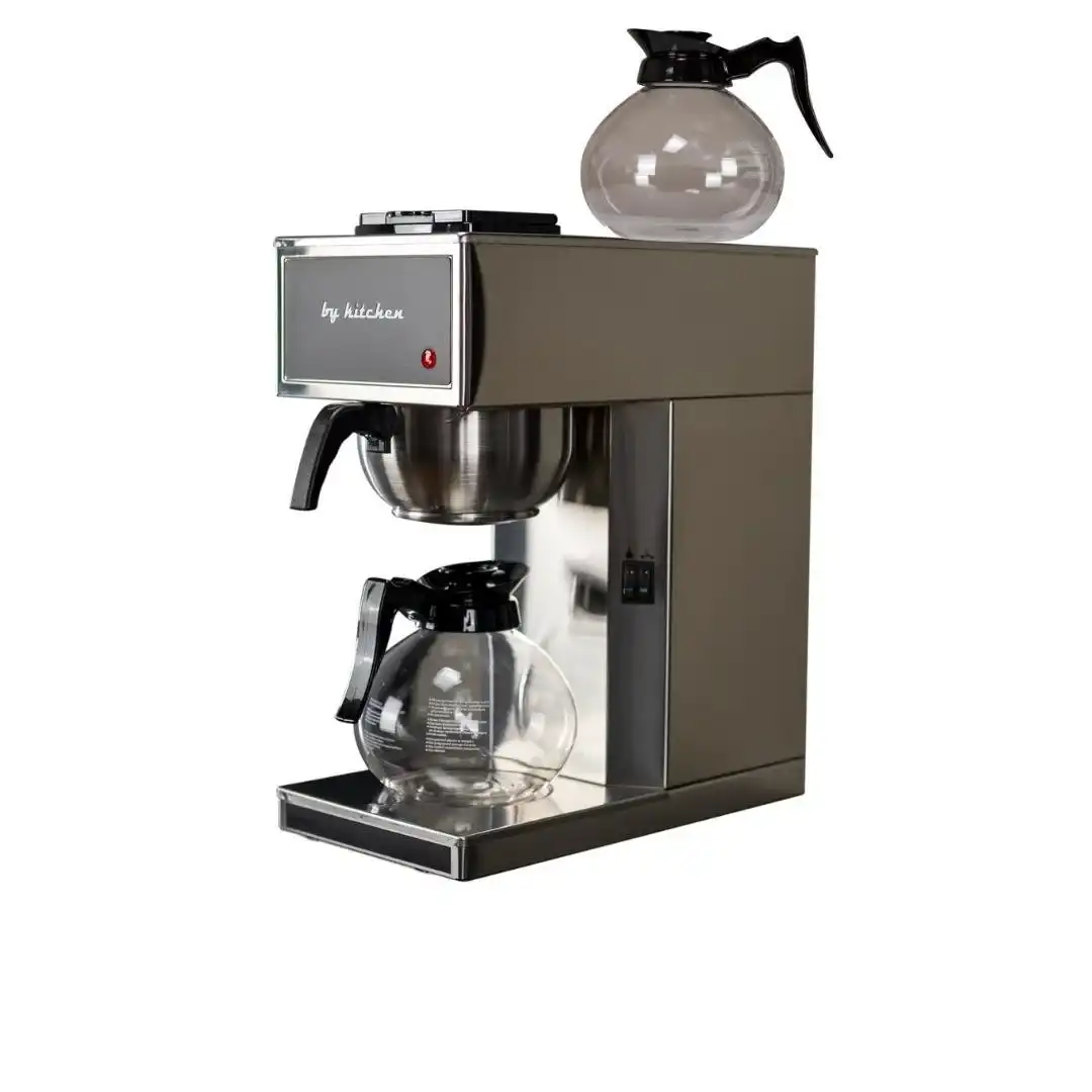 By Kitchen Çift Potlu Filtre Kahve Makinesi, çift 1.8L cam sürahisi, hızlı demleme teknolojisi ve paslanmaz çelik gövdesiyle profesyonel ve günlük kullanıma uygundur.