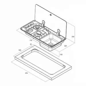 716 x 340 x 150 mm ölçüleri ve 696 x 325 mm ankastre uyumluluğu sayesinde pek çok mobil tezgâh yapısına kolayca monte edilir. 6 kg ağırlığı stabil bir kullanım sunarken montaj kolaylığı sağlar. Ürün üretici garantisi kapsamındadır.