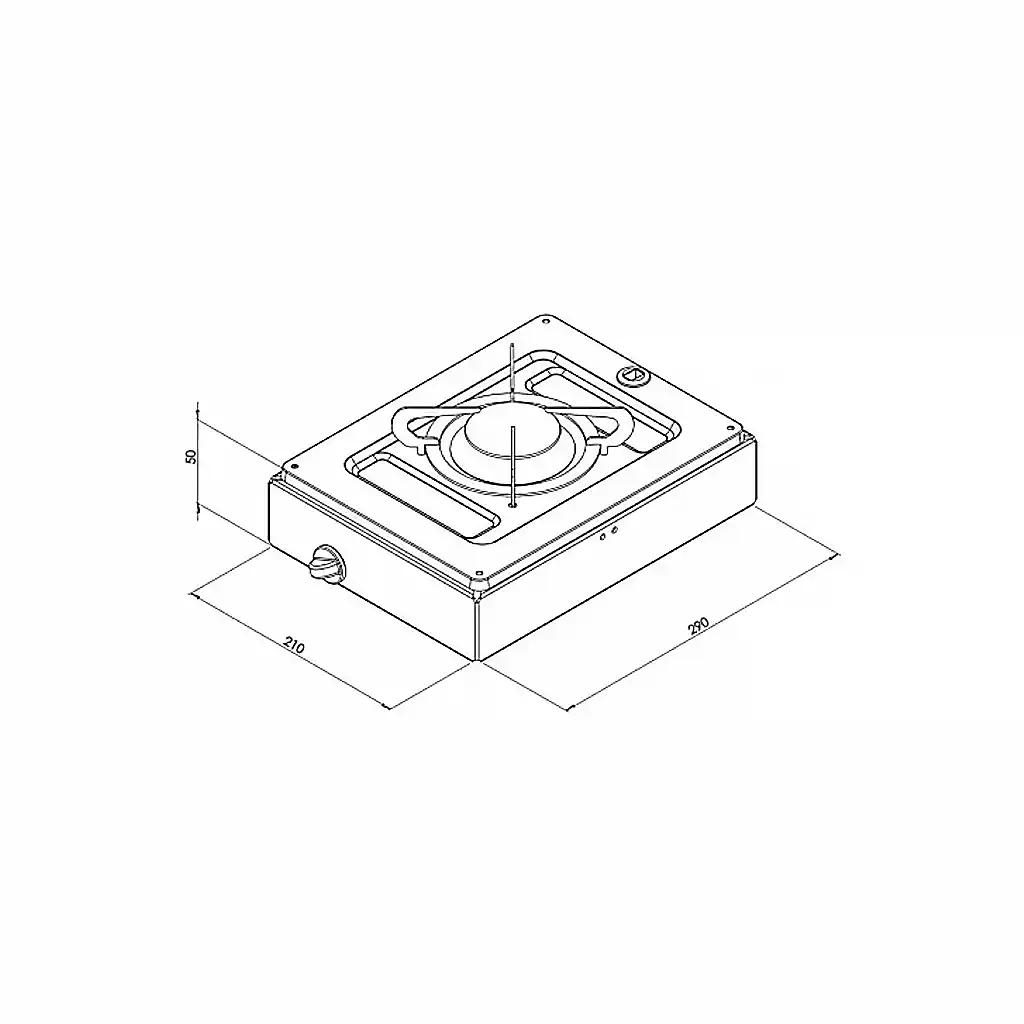 210 x 290 x 90 mm ölçüleri, küçük mutfak alanları için maksimum ergonomi sağlarken tek gözlü gazlı yapısı ile düşük tüketimle etkili bir pişirme performansı sunar. 2 kg hafif ağırlığıyla taşınması ve monte edilmesi oldukça kolaydır.