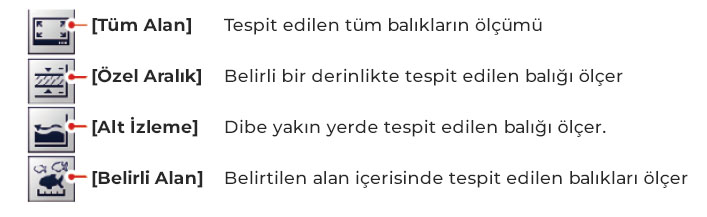FSS-3BB’nin balık boyutu ölçümü için dört yöntemi vardır. Sadece menü düğmesine tıklayarak InstantAccess bar TM’den favori ölçüm yönteminizi seçebilirsiniz .