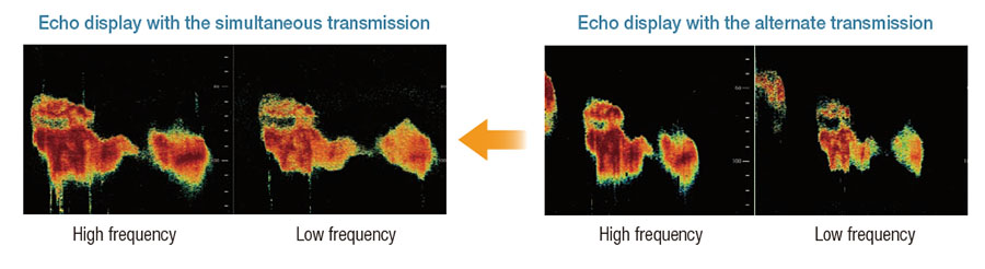 Eş zamanlı iletim uygulanarak eko-güncelleme oranı iki katına çıkar, bu da balık sürüsünün daha zengin bir şekilde sunulmasını sağlar.