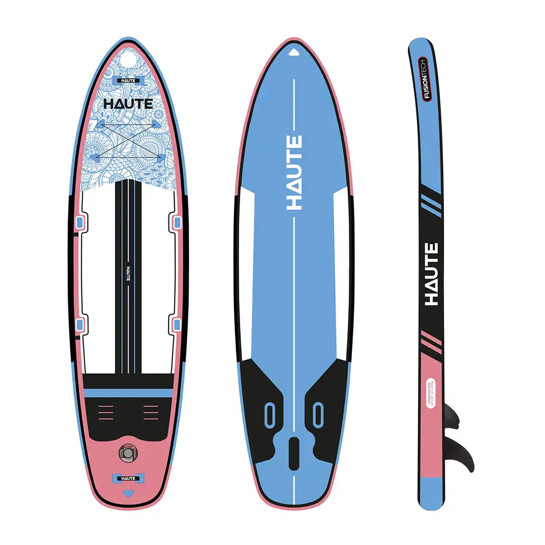 Haute Boards 10’6 Caspian, Drop Stitch ve Heat Fusion teknolojisiyle üretilmiş, su geçirmez, dayanıklı ve dikişsiz yapısıyla öne çıkan şişme paddle board modelidir. Çift duvar çekirdek ve kompozit PVC katmanları, sıcak hava ve basıncın optimal kombinasyonuyla moleküler seviyede kaynaştırılarak uzun ömürlü sağlamlık sağlar.