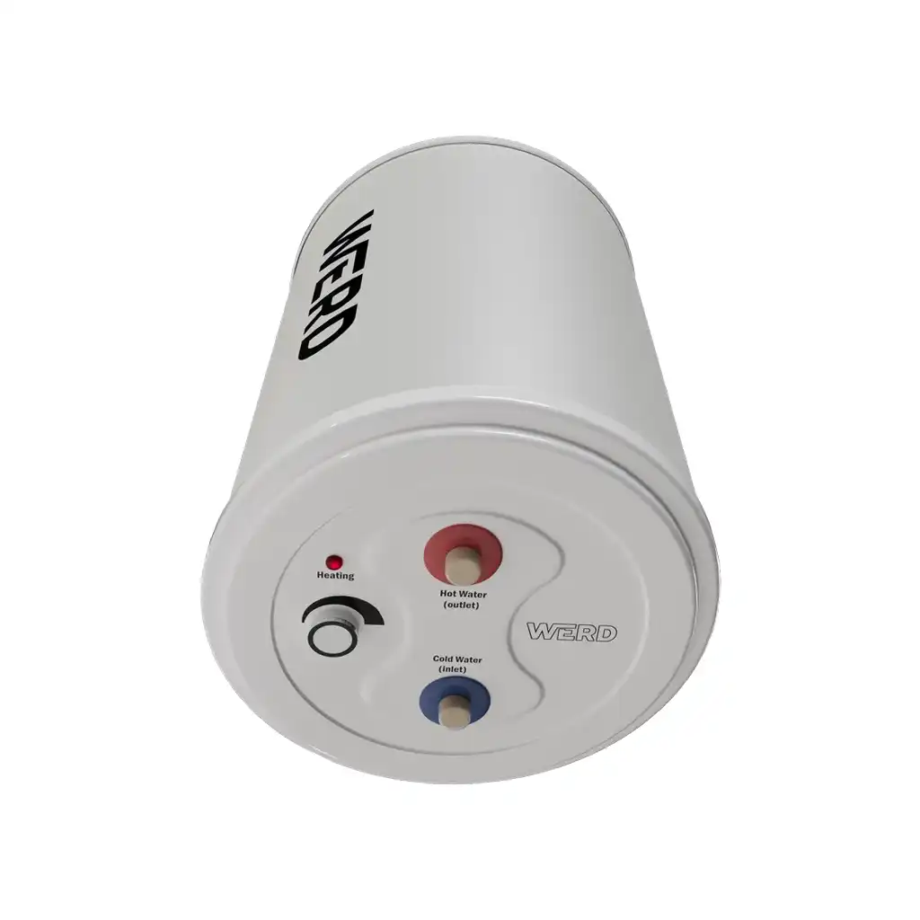 WerdWerd E-Boiler 12V karavan su ısıtıcı, 10 L paslanmaz çelik iç tankı, enerji tasarruflu izolasyonu ve gelişmiş güvenlik özellikleriyle karavan ve motokaravanlar için kompakt ve verimli bir sıcak su çözümü sunar.